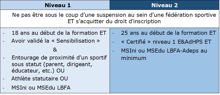 Toutes les informations ci-dessous concernent la formation spécifique niveaux 1 et 2