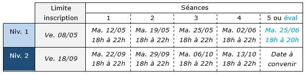 2. Date limite: Ve 08/05 (niveau 1) et Ve 18/09 (niveau 2)